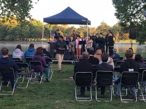Tim Bell leading a multi-denominational praise and worship team on Easter Sunday, 2018, held at the beautiful Lake Victoria in Hagley Park. Judy Greer recounted the fascinating events that unfolded early in the morning on the day that Jesus Christ rose from the dead, appeared to His disciples and to at least 500 other people in the days following His resurrection.